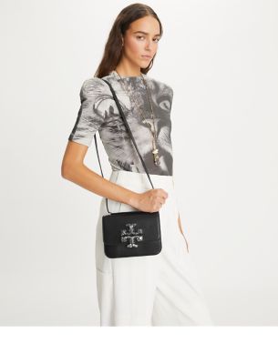 Against the clean lines of a box bag, the bold curves of mirrored hardware. A jewel of craftsmanship, the Small Eleanor Bag is designed to carry with ease. Wear the leather strap over the shoulder or crossbody.
