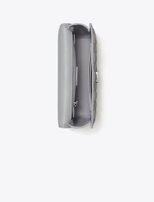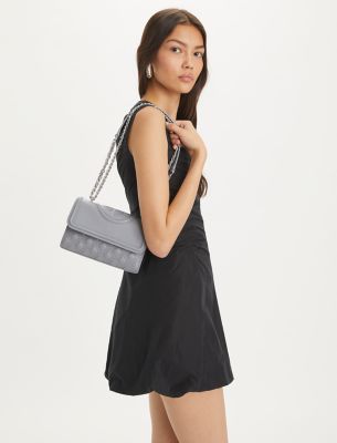 The Small Fleming Convertible Shoulder Bag with framed diamond quilting and an embossed Double T. It is crafted in a super-fine grain calfskin for a smooth, luxurious feel, durability and high scratch-resistance. The adjustable chain strap, laced with leather, can be worn doubled over the shoulder or long and crossbody.