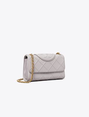 Enduring glamour. The new Small Fleming Soft Convertible Shoulder Bag is updated with pintucks in a diamond pattern and the softest leather. The feminine silhouette is sealed with an oversized bombé Double T. Braided with brushed chain, the strap can be worn long or short.