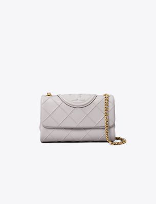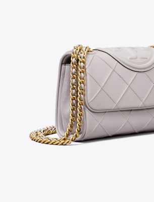Enduring glamour. The new Small Fleming Soft Convertible Shoulder Bag is updated with pintucks in a diamond pattern and the softest leather. The feminine silhouette is sealed with an oversized bombé Double T. Braided with brushed chain, the strap can be worn long or short.