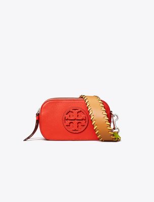 From our signature collection. The Mini Miller Crossbody Bag is crafted in soft pebbled leather with two zippered compartments and a laser-cut Double T. Wear it with or without the removable leather strap.
