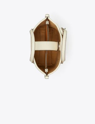 Minimal hardware on a new streamlined silhouette, now in striped woven raffia trimmed in leather. Designed to hold the essentials, our Mini Perry Tote Bag has a center compartment and a removable crossbody strap.