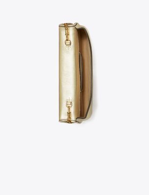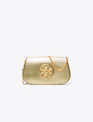 The Reva Metallic Clutch is defined by a curved shape and bold hardware. Wear it with or without the chain strap.