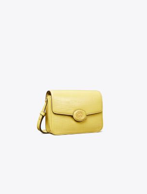 A collection named for Tory’s parents, Buddy and Reva Robinson. Inspired by there love of travel, the timeless and versatile silhouettes are designed for everyday use. The Robinson Crosshatched Convertible Crescent Bag is a crafted in beautiful polished leather and has an interior pocket for organization.