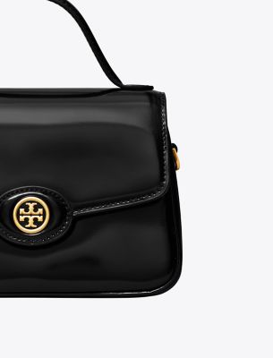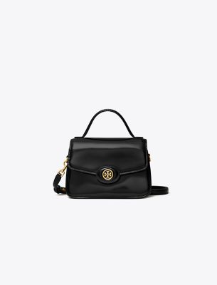 A collection named for Tory’s parents, Buddy and Reva Robinson. Inspired by their love of travel, the timeless and versatile silhouettes are designed for everyday use. The Small Robinson Top-Handle is made of beautiful spazzolato leather with smooth rounded edges. Carry it by hand or wear it with the removable crossbody strap.