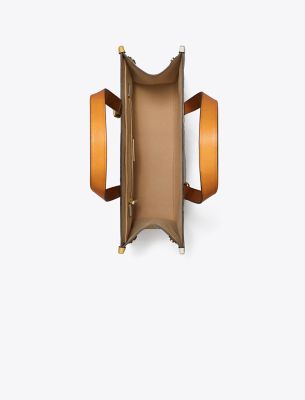 \ T Monogram Contrast Embossed Small Tote - Beeswax Multi - Tory Burch