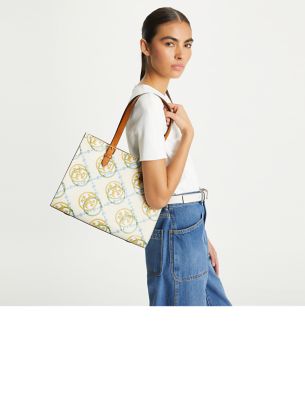 T Monogram Contrast Embossed Small Tote – Beeswax Multi