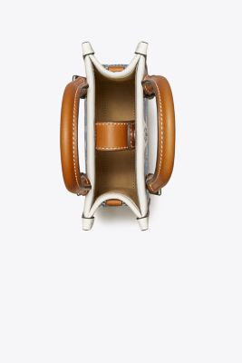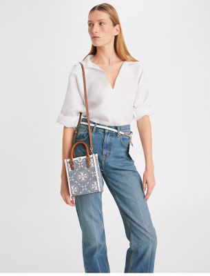 The T Monogram is a classic pattern inspired by traditional Pennsylvania Dutch quilting. Meticulously crafted in denim jacquard, the collection speaks to the timelessness of great style. The mini tote is trimmed in fine leather, with adjustable handles and a detachable crossbody strap. Lined in soft microsuede, every detail is considered, with special attention to function and versatility.