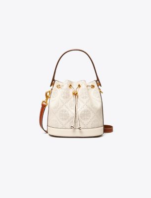 • T Monogram Pebble Mini Bucket Bag – Warm White