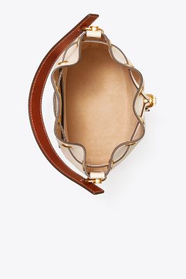• T Monogram Pebble Mini Bucket Bag – Warm White