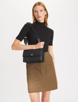 \ T Monogram Small Shoulder Bag - Black - Tory Burch