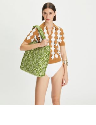 \ T Monogram Terry Tote - Leaf Green - Tory Burch
