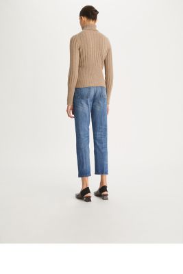 A great everyday pair, the classic denim jean has a high waist and slim fit reminiscent of vintage styles. Wear it with a retro-style button down shirt and sneakers.