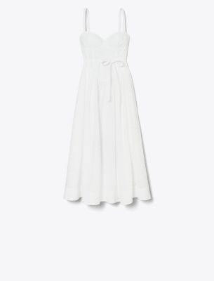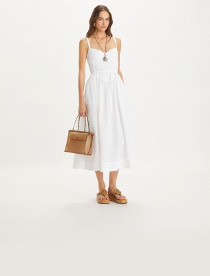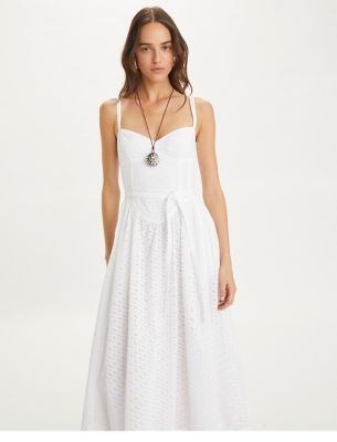Our broderie anglaise dress is cut from crisp cotton in delicate eyelet embroidery. The sweetheart neckline and fitted bodice accentuate the waist, while gentle pleats fall to a voluminous ankle-length skirt.