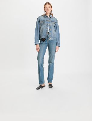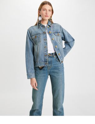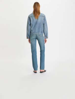 The new shape of denim, as seen in our Spring/Summer 2023 campaign. Our jean jacket is a true classic, crafted from Cone denim and cut for a relaxed fit with a flattering taper at the waist. It is a versatile layer to wear every day, over T-shirts, sweaters and dresses.