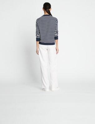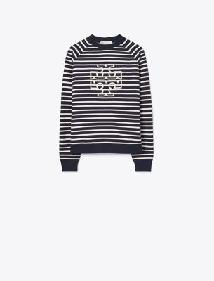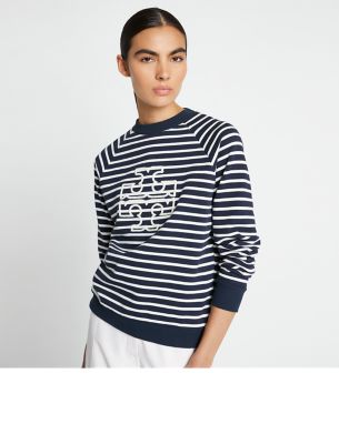 Our French Terry Logo Crew is updated with nautical stripes and raglan sleeves. The cozy sweatshirt — made from pure cotton — features chenille varsity letter patches, inspired by ’70s collegiate style.