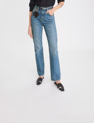 The new shape of denim, as seen on our Spring/Summer 2023 runway. Our mid-rise slim jean has a waist-defining rise and falls straight from hip to hem. A subtle crease against the light wash elongates the leg. An effortless wardrobe essential to wear every day.