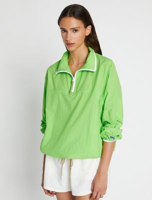 Lightweight performance outerwear is the perfect adventure companion piece, crafted in crinkled nylon poplin — breathable and soft against the skin. Featuring a relaxed fit, front hand pockets and reflective binding throughout, the half-zip jacket can be worn loose or pulled at the waist with the drawcord hem.