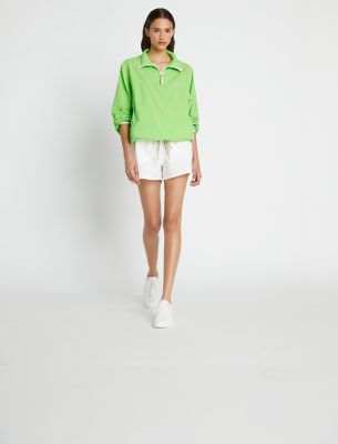 Lightweight performance outerwear is the perfect adventure companion piece, crafted in crinkled nylon poplin — breathable and soft against the skin. Featuring a relaxed fit, front hand pockets and reflective binding throughout, the half-zip jacket can be worn loose or pulled at the waist with the drawcord hem.