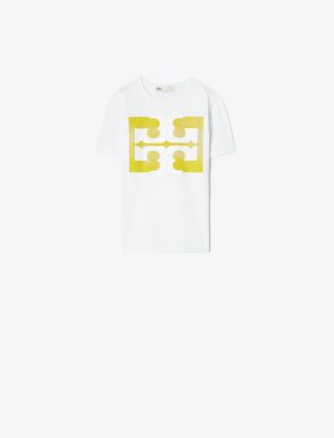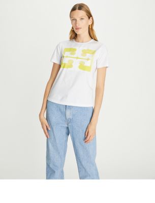 The classic cotton t-shirt with a signature twist. An ombré oversized monogram adds a pop of color alongside denim, skirts or beach pants.
