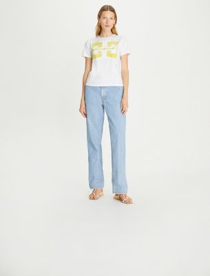 The classic cotton t-shirt with a signature twist. An ombré oversized monogram adds a pop of color alongside denim, skirts or beach pants.