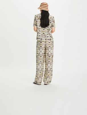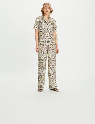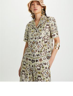 The new collection revisits signature pieces in beautiful materials and an ethereal palette. Our printed shirt is crafted in a lightweight silk twill. Wear it with the matching pants for an elevated take on pajama dressing.