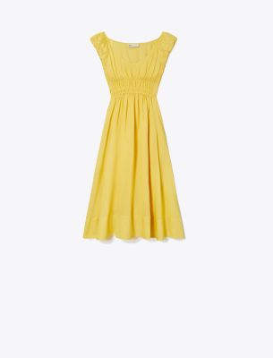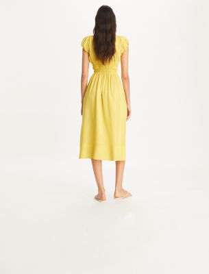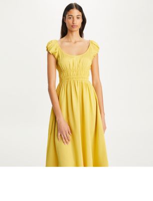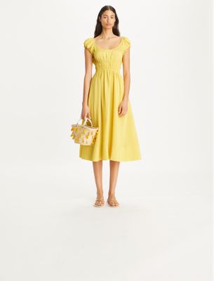 A feminine classic with a cinched bodice and romantic cap sleeves. Falling just below the knee and detailed with side pockets, the lightweight dress is a warm-weather must-have.