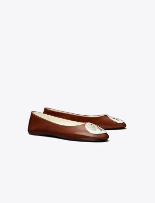 The icon returns. Since its 2006 debut, our Reva ballet flat — named after Tory’s mom — has defined effortless style. Now reimagined with clean, refined lines and our signature medallion transformed into a sleek beveled shape. The updated coin molds perfectly to the foot, revealing a hint of toe through PVC cut-outs. A hidden sliver wedge provides subtle lift and all-day comfort without sacrificing the classic silhouette. Reintroduced on our Spring ’25 runway, this modern interpretation celebrates the original’s sporty-meets-ballet spirit. Crafted in patent leather.