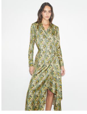 Silk Wrap Dress Blue Abstract Paisley