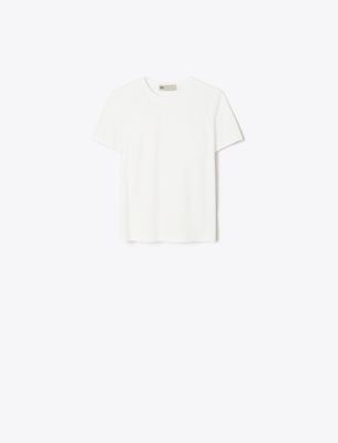 The classic cotton t-shirt with an allover print. Wear it tucked into the season’s high-waisted denim and knit skirts.